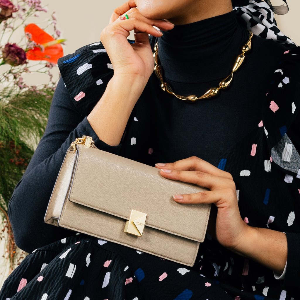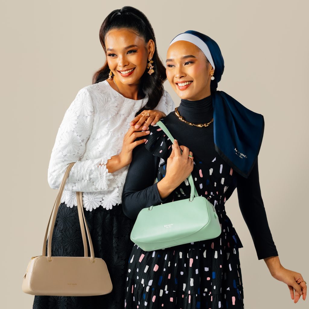 Kate Spade New York 推出 2025 年春季系列,而此系列传达了品牌对女性化、现代和欢乐的独特观点。今季品牌的标志性手袋款式:Deco 和 Grace将成为本季的焦点,同时也体现了开斋节庆祝活动的欢乐。包包的标志性廓容易搭配的传统马来装扮。