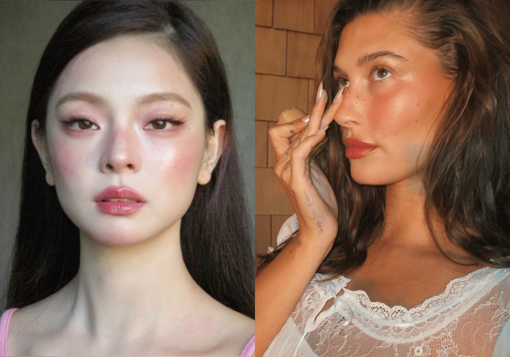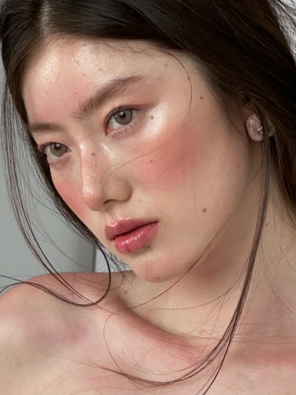 腮红不再规矩地刷在颧骨上,而是横扫整个面中区,从鼻头、鼻梁一路延伸到脸颊,呈现一种“热辣辣地晒了一轮海滩”般的健康红晕。颜色推荐:烟熏玫瑰、烧橘、奶杏红——重点是晕染得柔和、透明,像融进皮肤里一样。