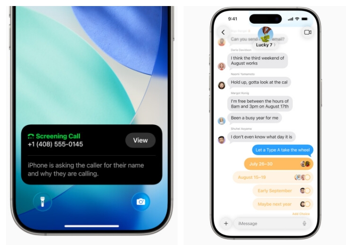 除了强化对话体验,iOS 26也提供自定背景,能借助AI建立群组投票、群组正在输入提示、自定义聊天背景、自然语言搜索、部分文字复制、陌生号码筛选等。另外,也新增了「来电筛选」,基于Live Voicemail,会手机来电者的资讯,提供使用者所需的细节,让他们决定是否要界定或忽略来电。