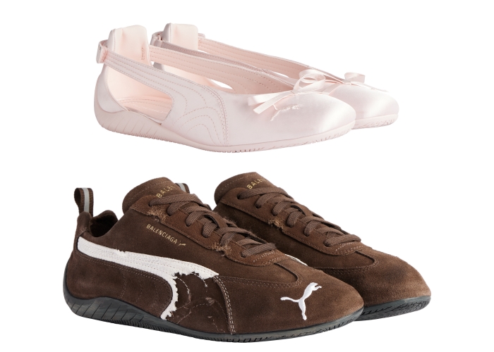 万众期待的Balenciaga | PUMA合作系列终于正式上架,此合作正是将Balenciaga独有的设计语言和PUMA高性能运动装基因互相辉映的作品。Balenciaga | PUMA系列包括吸睛的Balenciaga| PUMA Ballerina,鞋款将PUMA1999年问世的Speedcat鞋底结构,重新演绎成芭蕾舞鞋般柔软的平地,巧妙将PUMA标志性的弯刀轮廓以镂空方式呈现,搭配缎布材质制成,夹带着一丝浪漫;