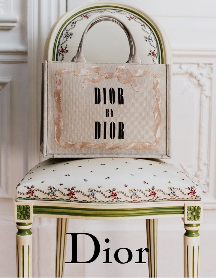 这本书正是出自Dior品牌创始人的自传,于1956年首次出版,它以第一人称的口吻回顾了他如何从一位对艺术充满热情的青年,走上创立自己高级时装屋的旅程,并在战后重建的巴黎中掀起一场时尚革命。同时内容也回顾了他在Grandville度过的童年时光、低潮期、突如其来的成功,以及他的灵感来源和创作过程。Book Tote的手袋表面设计以Dior经典的米色蝴蝶结花纹呈现,十分符合Dior先生的唯美与浪漫的因子。