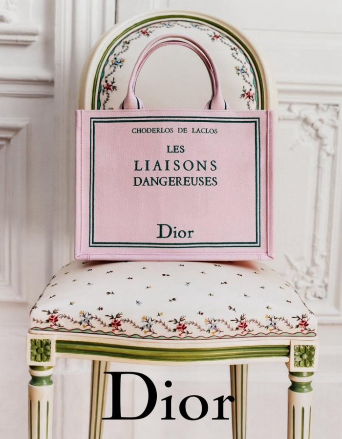 三本文学书里面,《Les Liaisons Dangereuses》(危险关系)属于最「资深」的文学书籍了,作者为Pierre Choderlos de Laclos,他是一位法国小说家,也是军官。书本内容是一部书信体小说,由多位贵族人物之间互通的信件组成,围绕维尔图侯爵夫人(Madame de Merteuil)与瓦尔蒙子爵(Valmont)联手操控情感游戏的阴谋展开。两位主角以操控爱情和性为乐,最后却双双陷入毁灭。书中文字犀利优雅,情感冷酷,情节扑朔迷离,既是心理小说的先驱,也是一部对人性欲望极度审视的哲学之作。Book Tote设计从书本封面的绿色线框和红色字取得灵感,手袋也以清新的粉红色覆盖,让手袋充满复古气息。
