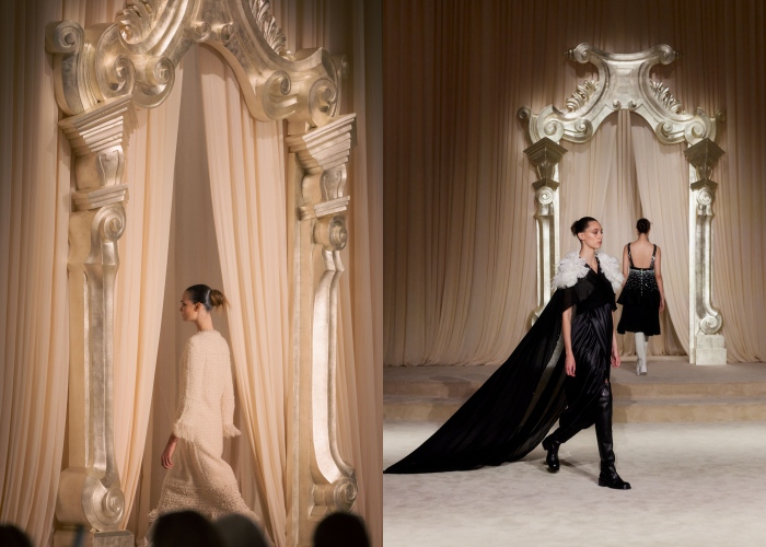 由熟悉的搭档Willo Perron操刀设计,位于大皇宫中荣誉厅(Salon d‘Honneur)举办的秀场,完美致敬了1962年的经典伸展台曾经,也还原了康朋街31号高订沙龙的经典风味。