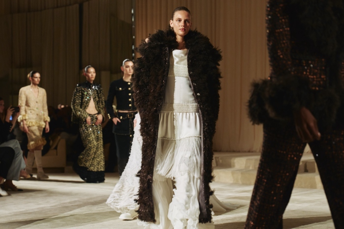 在新任创意总监Matthieu Blazy首秀来临以前,Chanel 2025/26秋冬高级订制服系列是Chanel创意工作室设计的最后一个作品,也是品牌高订系列问世110周年纪念,因此以一场赞颂自然与乡野的诗篇打开了序幕。