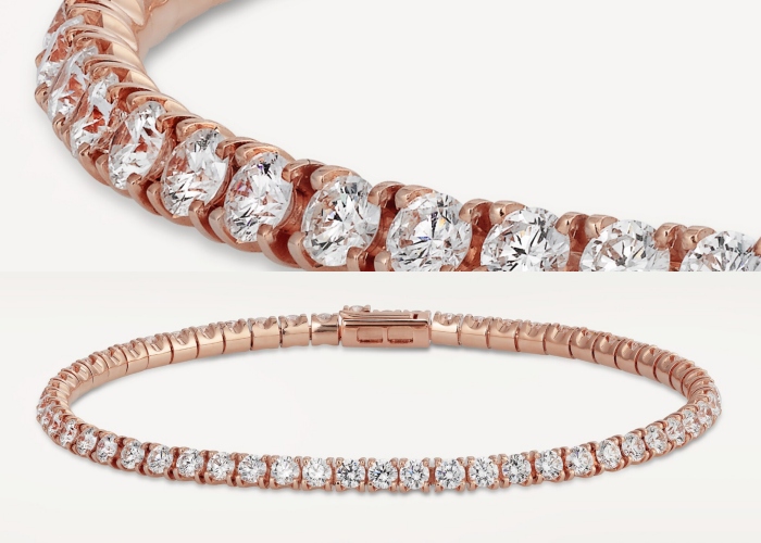 虽然市场上统一称排连续镶嵌的钻石或宝石为网球手链,但实际在切割方式与镶嵌工艺上,存在不少变化。像透过多种钻石切割样式进行镶嵌,包括最常见也最闪耀的圆形明亮式切割、较为复古的祖母绿切割、视觉更强烈的公主方切割、较柔美的椭圆形和比较少见的马眼和水滴形写个。镶嵌方面也有爪镶(Prong)、包镶(Bezel)、轨道镶(Channel)等选择,给予网球手链更多的美学呈现。