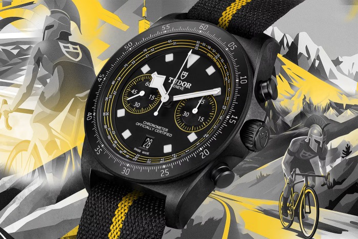 选用碳复合材质打造,结合钛金属元素令其更坚固,以应对赛车路上的变化莫测。腕表除了足够「坚强」,Pelagos FXD Chrono充分考虑了车手在骑行过程中对腕表的需求,包括测速计刻度以螺旋方式「围绕」表面,瞥一眼便可读取骑行时的平均速度。43mm 表的壳配有钛金属旋入式表冠和按钮、防水性能 100米、饰以黄色条纹的一体式黑色织纹表带。腕表具备 70 小时动力储存,搭载的是 MT5813 型双向摆陀系统自动上链机械计时原厂机芯。TUDOR Pelagos FXD Chrono 黄色款仅限量发行 300 枚,编号第 7 枚为传奇自行车手兼 Tudor 职业车队老板 Fabian Cancellara 所专属。