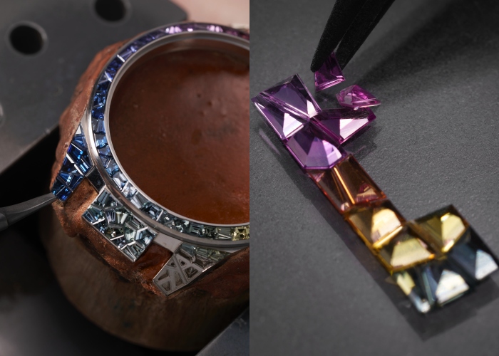 全新Blast镂空陀飞轮虹彩璨光高级珠宝腕表限量仅8枚,延续Blast系列一贯的先锋造型设计,并镶嵌色彩斑斓的珍贵蓝宝石,堪称Le Locle 表厂迄今为止打造过的最为瑰丽非凡的杰作之一。腕表采用精妙的隐秘式镶嵌技艺,在表壳、表圈、表冠、表盘以及表扣上悉心点缀211颗、总重13.33克拉的珍贵蓝宝石,为兼具先锋设计与精湛技艺的Blast系列腕表注入炫目华彩,缔造出精致迷人的高级珠宝臻作。