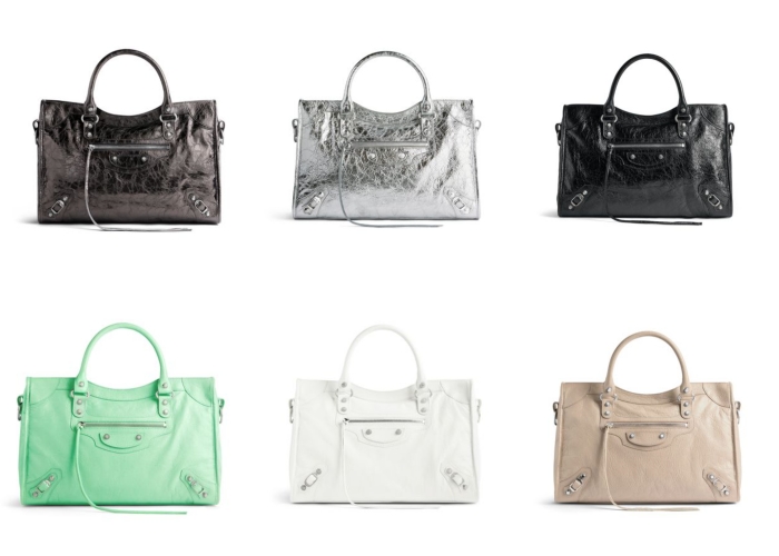 回顾2001年,当时Balenciaga的创意总监Nicolas Ghesquiere推出Motorcycle City Bag可说是经典。经过处理展现复古感的柔软小羊皮包身、鲜明的长流苏设计、银色窝钉,招牌小镜子,至今还是令人印象深刻。在当时是街拍鼎盛的年代,打开时尚街拍照几乎看到的名人身上都背上了这款机车包。在机车包首次亮相的20多年后,手袋被新新命名为「Le City」,简化了原作的繁复细节,用25片皮革手工拼接构建出手袋结构,用金属搭扣加固的包角,独特的顶针状饰钉做点缀。Le City 和过去机车包其中一个大不相同之处就是采用了柔软的Arena小羊皮,随着时间推移会变得更柔软,仿旧效果也更迷人。