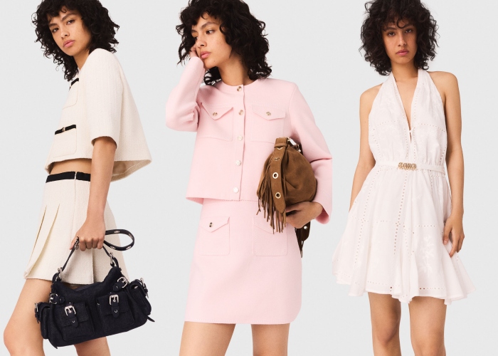 Miu Miu 为庆祝2025年七夕节,请来摄影师Coco Wu执镜,模特齐浩洁与蒋瑞琪置身极简私居,梦幻与现实交织其间,氤氲温馨亲密氛围。大片中可以看到令人心动的重点单品,包括运动风针织衫和水洗皮革与菱形格纹套头衫、棉质衬衫和复古内衣风格的衬裙,经过叠穿营造出既怀旧又不失叛逆的对比效果;