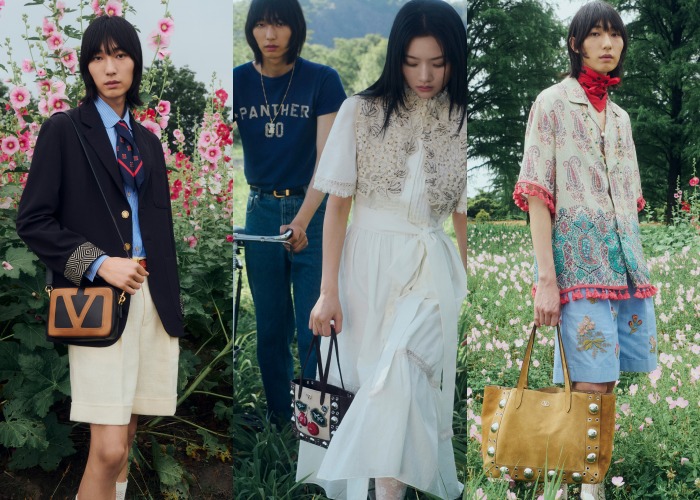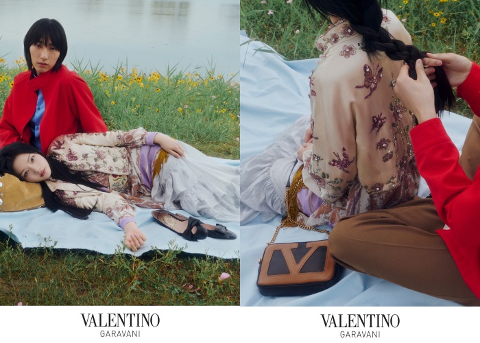 Valentino的七夕大片一如既往充满诗意,由创意中间Alessandro Michele构思、摄影师Julie Greve掌镜,Valentino的七夕形象广告就在夏日午后绿意盎然的花园中上演。摄影师捕捉到了每段爱意流动的瞬间,两位身穿Valentino 2025早秋系列的主角,搭配Valentino Garavani配饰,包括括标志性Nellcôte 与 Viva Superstar 包袋。延续1960年代末自由奔放的气息,Valentino Garavani Nellcôte包袋在其标志性的「嬉皮时尚」风格之上,斜挎包与托特包均采用柔软麂皮打造,缀以刺绣、饰有几何图案的绚丽提花面料,在工艺精巧度与日常实用性之间取得巧妙平衡;