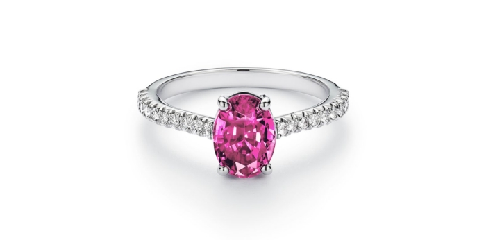 在颜色上,是不是感觉粉红色蓝宝石似乎更倾向于「红色」家族呢?尽管红宝石和粉红蓝宝石在科学成分上属于同一种矿物(corundum),但主要依据颜色浓度和国际宝石界的命名标准来区分,像红宝石(ruby)必须是浓郁的鸽血红或鲜艳红色调,而这颜色是由铬(Cr)元素组成;只要铬(Cr)的含量偏低或较浅、偏粉红时,就会被归类成粉红蓝宝石(pink sapphire)。加上红宝石因为稀有而珍贵,所以会被视为高阶宝石,如此区分也是为了精准两者之间的定价和收藏价值。