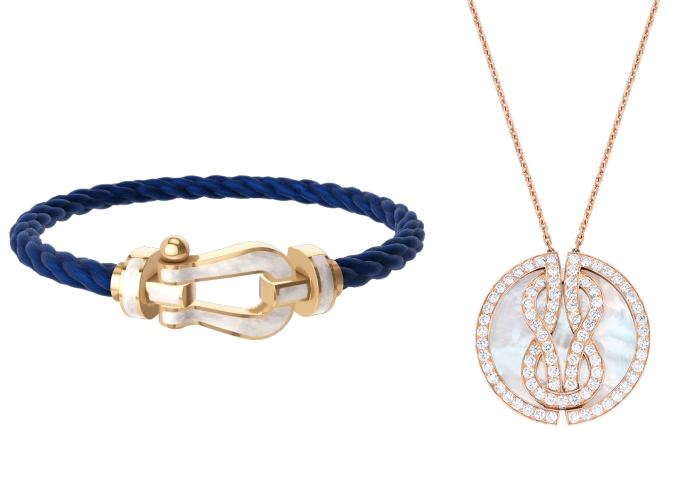 主要是因为珍珠母贝具有独特的生长纹,表面还有流动的晕彩, 细致起来能和上乘的珍珠一样是难能可贵的。珍珠母贝由于生存条件及内部所受侵蚀的情况不同,在颜色、纹路、细洁程度上都有很大的区别,所以即使是颜色十分相近的珍珠母贝,质感也都是独一无二。尽管珍珠母贝不像钻石那样闪耀,却有种低调的优雅与疗愈气息,因为它散发的柔光能衬托肤色,也常被视为「带来平静与保护」的象征。在东方文化中,母贝象征智慧与平衡;在西方珠宝语境中,它代表纯净与永恒的爱。