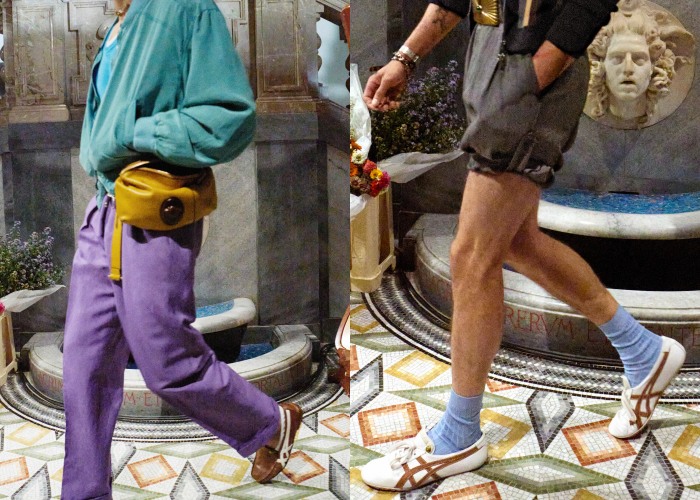 在2026春夏秀场上可有让你印象深刻的亮点?一定少不了Onitsuka Tiger的经典 TAI-CHI居然出现在了Versace的秀场里,可真是令人惊喜的联名组合。本次亮点核心焦点是 Onitsuka Tiger标志性的TAI-CHI 运动鞋,在原有基础上融入了Versace的奢华基因,至于鞋款侧边延续了 Onitsuka Tiger 极具辨识度的线条设计,并特别采用双缝线工艺,令线条更具立体层次感,行走间展现出干练利落的姿态。鞋舌处巧妙镶嵌了 Versace 经典的美杜莎头像,金属质感与运动鞋身形成鲜明反差,低调中透出奢华气息,无论搭配西装裤或连身裙,都能轻松提升整体造型的时尚精致度。