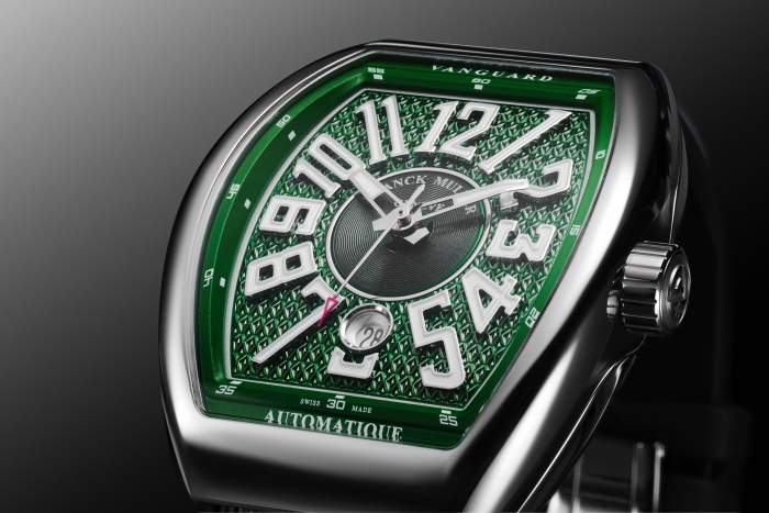 Franck Muller全新 Vanguard 腕表承袭了 Cintrée Curvex 酒桶形表壳的雕塑感轮廓,V 43 不锈钢表壳比例和线条精妙利落,既保留了活力动感,又不失日常优雅。表壳两侧饰以黑色嵌件,配合蓝宝石水晶镜面,坚固同时兼具美感。其最大亮点在于表盘的全新 guilloché pavé de losanges 钻石形格纹玑镂设计,那是由位于汝拉山脉莱布瓦的自有工坊独立研发制作,经四道精密冲压工序完成,每一处切面都能捕捉与反射光线,中央旭日纹则以微喷砂工艺打造,营造深邃的立体视觉,每个手部动作都有光影自由律动。