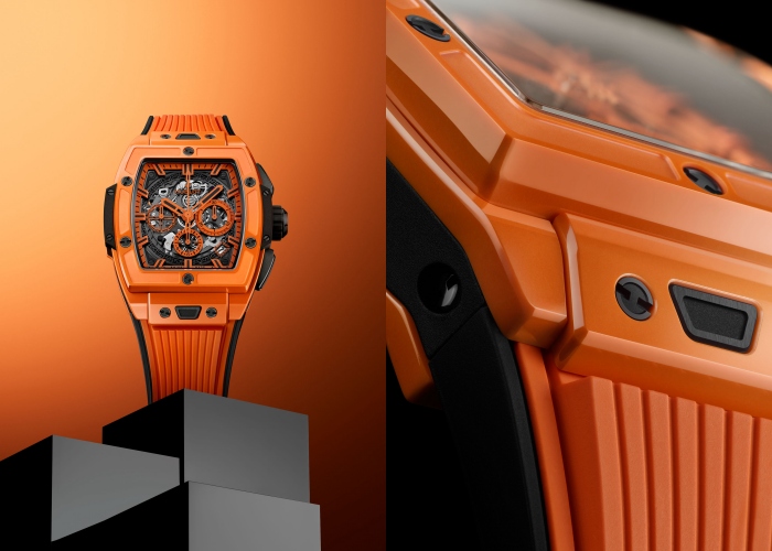 自 2014 年诞生以来,Spirit of Big Bang 系列以经典六颗螺钉表圈、镂空机芯、橡胶防滑表冠、可替换表带系统,以及其结构感与轻盈感而闻名。今次带来新作在延续这些标志性设计元素的基础上,通过色彩的重新定义,包括红色的热烈、黄色的明快、天蓝的清新与黑色的深邃。全新四款 Spirit of Big Bang Tourbillon 5-Day Power Reserve 核心搭载的 HUB6020 手动上链机芯,专为酒桶型表壳研发。