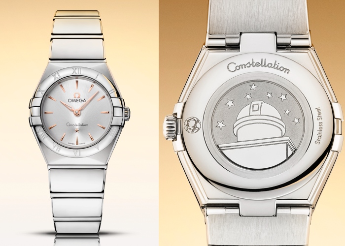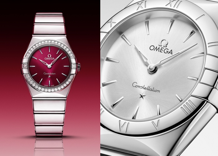 Omega延续在女士腕表领域的创新传统,为Constellation系列推出全抛光精钢表壳与表链,并提供25毫米与28毫米两种尺寸,共八款新作。崭新Constellation系列以统一抛光表面诠释现代风格,表壳、表链与标志性爪形表耳光影一体,营造出像星光流动般的浪漫气息。25毫米表款提供两种表盘选择,分别是蓝色砂金石玻璃表盘如夜空繁星,银色太阳纹表盘点缀18K Sedna™金细节;而28毫米版本则新增酒红、孔雀蓝珐琅表盘,以及黑色漆面与银色电镀款,均搭配18K白金镂空指针。