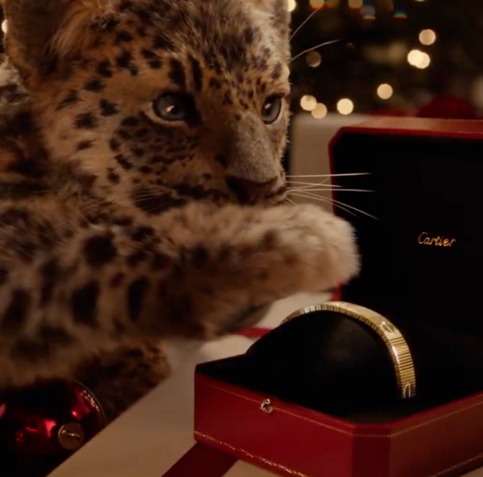 年末的佳节广告都是各大品牌的重头戏,Cartier在全新节日影片里,让一群小美洲豹们成为主角,它们顽皮、灵动,巧妙地躲过了Cartier Boy的目光,悄然溜出画框,灵敏又调皮地在品牌诞生地——和平街13号的旗舰店中四处探险。这些小美洲豹们时而穿梭在珠宝盒间抓迷藏、时而玩弄红色缎带,在品牌多个珍贵的作品的簇拥下嬉戏,看这小美洲豹伸出小巧的豹爪轻轻触摸珠宝作品时,真让人心为此融化!