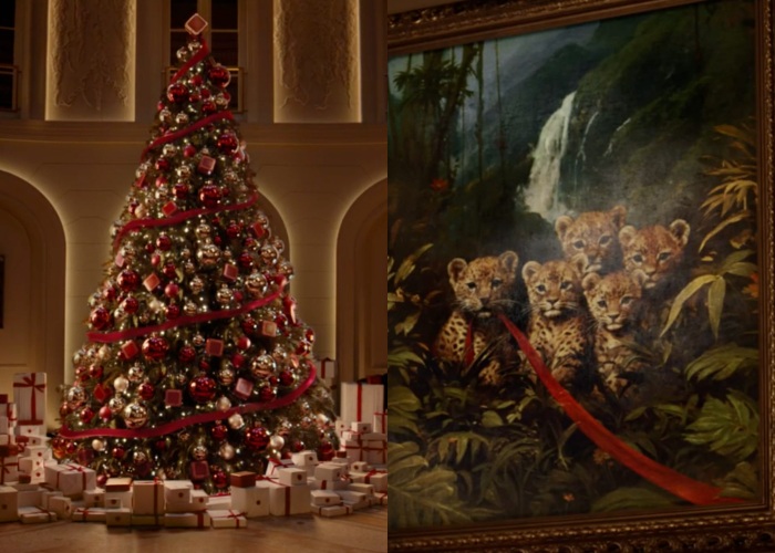 在这奇妙的夜晚,小美洲豹们肆意带来无尽欢快和乐趣,来到影片结束之前,它们带着一缕红色丝带回到画中,看似一切未发生,唯有玻璃穹顶下,被装点一新的圣诞树留下了这一场魔法的见证。提醒着人们,只要相信美好奇迹,所有的梦想都能实现。