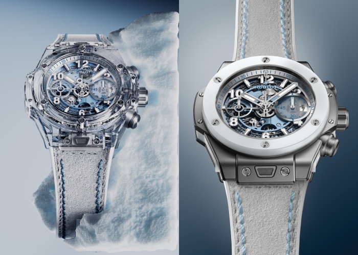 如冬日清晨的第一束暖光而生,为年末注入一丝温暖。这两款腕表将前沿材质与 Hublot 专利技术精巧融合,从 UNICO 机芯到高科技陶瓷与蓝宝石材质的运用,都展现品牌的创新实力。内部均搭载编号 HUB1280的UNICO 机芯,以蓝宝石或钛金属与陶瓷材质打造,呈现冰晶白与冰川蓝的冬日色调,在优雅中注入一抹活力。