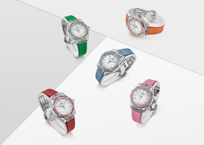 44mm 表壳与透明蓝色橡胶表带、开放式机芯设计的蓝色细节呼应一致。搭载 Hublot 首款自主研发与自制的机芯,由 354 个组件构成,经精简设计以提升耐用性,其采用的双向上链系统有效助力机芯还具备 72 小时动力储存。是一款献给热爱色彩、风格大胆爽朗的现代女性的节日礼物。
