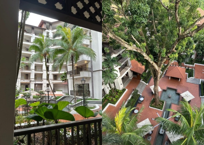 从外观可能看不清楚,但Q编走进Palm Garden Hotel后开始能理解为何有人喜欢选择在这里度假,因为其最迷人的地方是它的整体氛围。酒店被花园和浓密的绿植包围,从 lobby 到房间的路径都有一种「半度假村」的感觉。走在中庭Courtyard 区里,还能听到昆虫声、看到阳光透过树叶,感觉不到大型酒店的压迫感,反而有点像住在大自然旁的小别墅区。