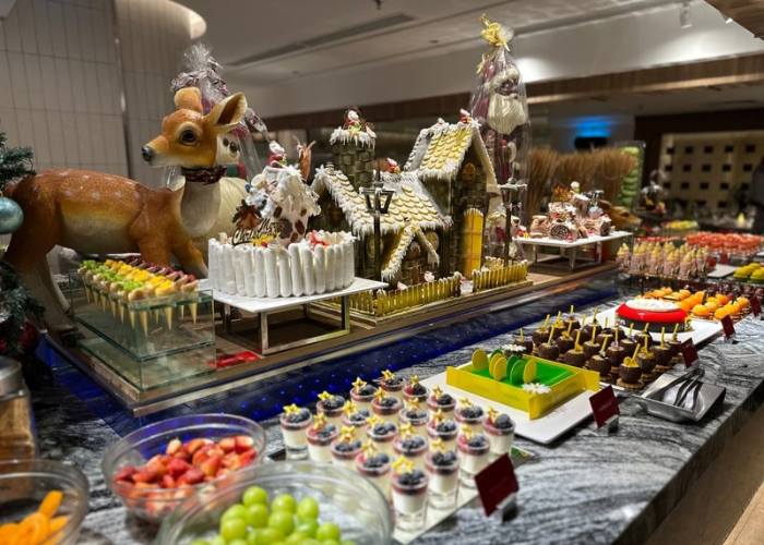 另外还有Burrito站、披萨、意大利面、烩饭、Tandoori、清蒸鱼、炒虾等全球风味让餐点更具层次。此外还有道地马来佳肴,如Rendang Daging Tok 等。同样的,甜点区域十分澎湃,从圣诞布丁、姜饼屋、树桐蛋糕、蛋白霜甜点到冰淇淋台,完全符合节庆氛围。整体来说,Marriott Putrajaya 的节庆自助餐依旧维持品牌一贯的大气与稳定水准,无论是想享受节日氛围、与家人聚餐,或追求丰富选择的自助餐体验,这里都极具吸引力。