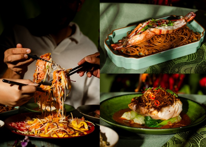 如果年间聚餐旨在要小型,还能餐后直接小酌的选择,可以参考The Chow Kit Kitchen & Bar 带来的Prosperity Feast。以融入本地特色和食材为名的餐厅,为今年带来的新年菜单当然从鱼生开始,有别于传统鱼生,他们选择了水果如菠萝蜜丝、萝卜丝等蔬果,搭配脆口的番薯和芋头炸丝,还有酸甜口的酱汁,清爽又爽口。然后迎来老虎虾长寿面,贯彻华人新年长寿延绵的美好寓意。主菜方面有叉烧和牛搭配蒜米炒饭或选亚参酸辣风味的石斑鱼搭配蒜米炒饭,迎合不同人的口味,最后由马六甲椰糖口味搭配龙眼的Panna Cotta完美收尾。