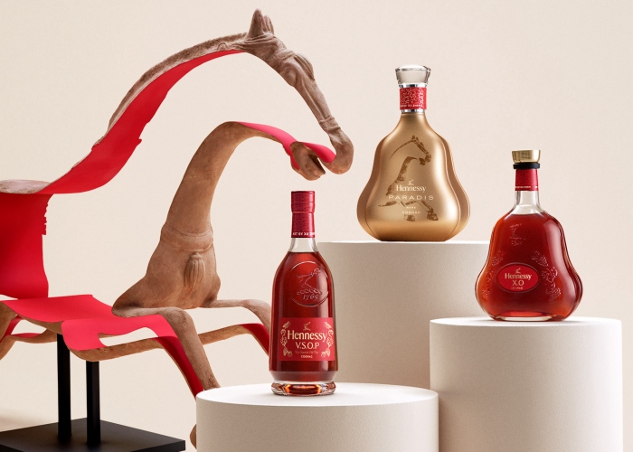 为庆贺马年,Hennessy推出三款限量酒瓶,包括Hennessy V.S.O.P, Hennessy X.O 以及Hennessy Paradise,每款酒瓶与包装均以充满活力的马作为灵感,以雕塑风格骏马图案诠释无拘无束的活力气息,献给钟情艺术和顶级干邑的品味人士。其中经典瓶身以灿亮铜色演绎,跃动骏马呈现源源不绝的生命力和力量。瓶颈缀以饰有镀金群马图腾的红色皮革环套,升华为艺术臻品。