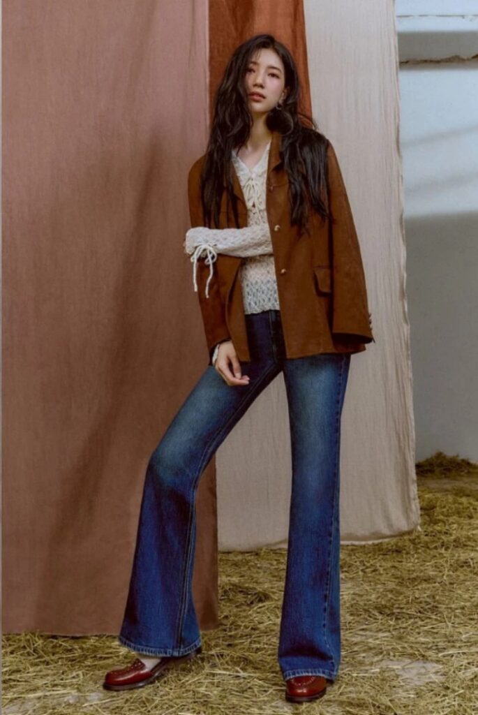 最自由不羁的喇叭裤设计也回归了,但今年重点在「小」,而不是浮夸像7-80年代浮夸的大喇叭裤管设计。许多设计都是在裤管三分之一处才稍微放宽喇叭的设计,既能修饰腿型又能自带波西米亚的风格气息,展现刚好的慵懒、松弛感。而且喇叭裤搭配球鞋、凉鞋高跟都很合适,还能完美拉高腿长。
