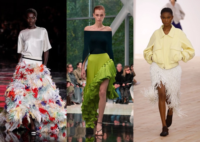 流苏几乎成为这一季秀场最有「动感」的元素。从裙摆、外套边缘到包袋细节,随着步伐摆动的流苏让整体造型多了一种轻盈的节奏感。像 Alaïa、Chanel和Loewe都在秀场上大量运用细密流苏,让服装在静止与动态之间展现不同层次,简单来说只要走动起来,就会好看。
