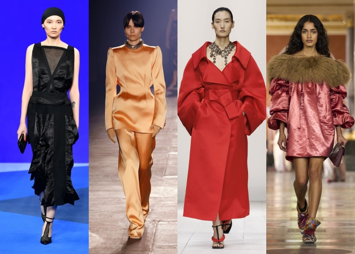 如果说亮片太张扬,那么这一季流行的是更柔和的光泽感。丝缎、金属纱线或微微反光的面料,让衣服在灯光下呈现 subtle shine。像Louis Vuitton、Mugler等都运用了这种材质,让造型看起来既精致又富有层次。