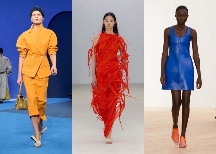 在大量图案和装饰之外,许多品牌也选择回到最简单的表达——纯色。饱和度高、颜色浓郁的单色造型,让整体看起来干净又有气场。像Loewe、Issey Miyake、Lanvin等品牌就通过剪裁与颜色的力量证明,有时候越简单,越高级。
