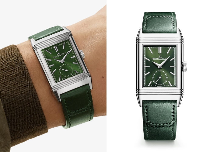 Reverso Tribute翻转系列腕表复刻了1931年Reverso翻转系列初代原型表款。在保持原型表款标志性特点的同时加以锐意创新,梯形镶贴时标与太子妃式指针相呼应,为原型表款平添了现代诠释。在Tribute Monoface Small Seconds版本中,品牌以深邃的绿色表盘重新诠释这一经典轮廓。太阳放射纹饰面随着光影流转,呈现出层次丰富的视觉效果,而6点钟位置的小秒盘则延续了传统制表的优雅比例。搭配同色系皮表带,这抹绿色显得格外复古且富有诗意。