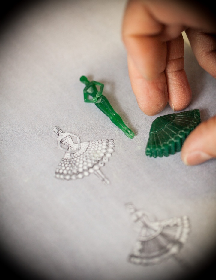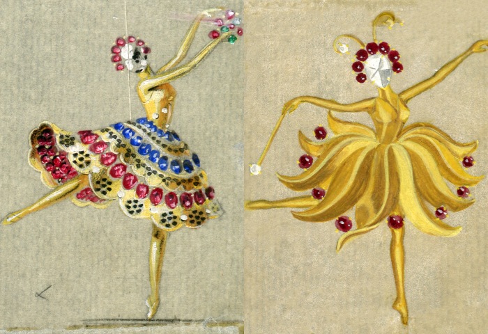 正如 Balanchine 在回忆录中所提到的,这个以珠宝为灵感的芭蕾舞剧构想,最初源于朋友 Nathan Milstein 的一次引荐。当他第一次见到 Claude Arpels 时,便被其收藏的华美宝石深深吸引。Balanchine 写道:「我一直都很喜欢珠宝。我喜欢宝石的色彩,也欣赏它们本身的美感。后来看到我们的服装工作室在 Karinska 的指导下,将这些宝石的光彩转化为舞台服装,那种效果令人惊叹——当然,真正的宝石对舞者来说实在太沉重了。」