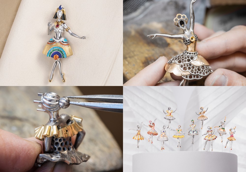 自1940年代初以来,Van Cleef & Arpel长久以来将舞蹈艺术作为源源不绝的创作灵感泉源。而「Ballet Précieux」系列于2007年面世,于2023年扩充该系列,致力于以高级珠宝作品重现经典芭蕾剧目,尤其是浪漫主义时期作品中的舞伶身影。在高级珠宝工坊工匠的巧手下,舞伶的曼妙姿态、华美舞衣都得以绚烂呈现。