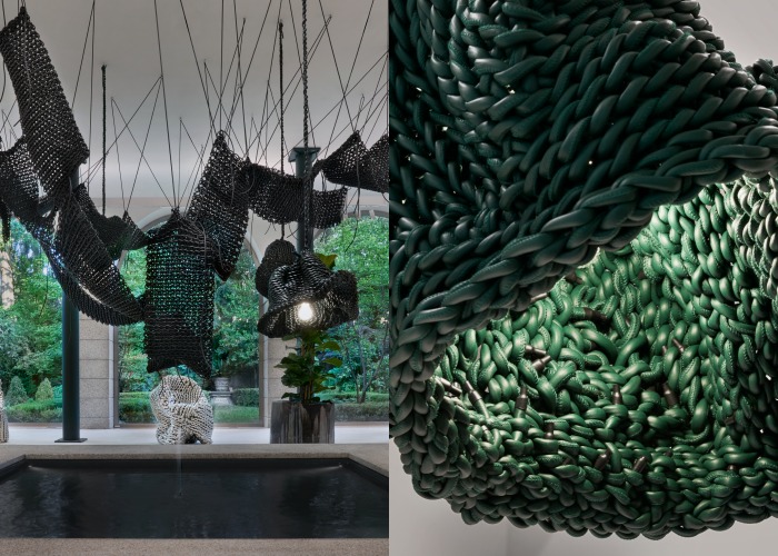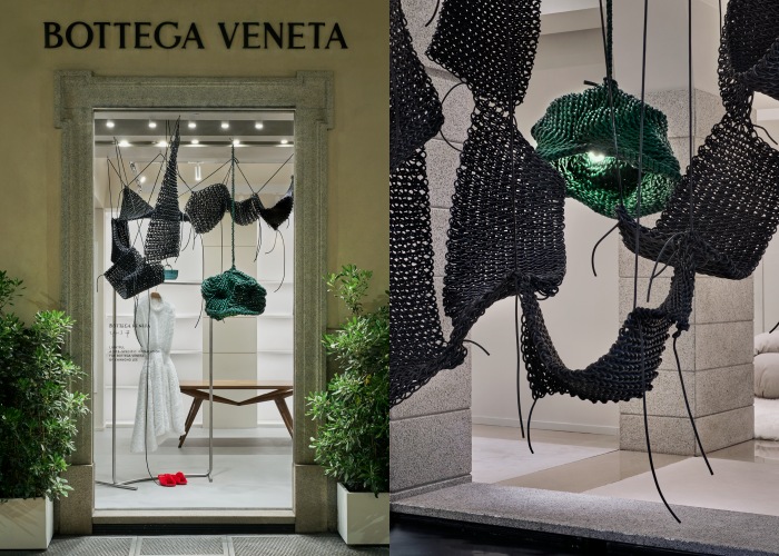 为迎接2026米兰设计周,Bottega Veneta携手韩国艺术家Kwangho Lee展开全新合作,于品牌位于Via Sant’Andrea门店呈献特别场域装置,并同步于米兰城市展开相关活动。此次装置名为 Lightful,结合Kwangho Lee标志性的编织语言与全新灯光雕塑,以Bottega Veneta皮革条带手工编织而成,并选用创意总监Louise Trotter指定的黑色与绿色调呈现。每件作品皆拥有独特而有机的造型,在光影交错之间,进一步延伸艺术家对材质、结构与工艺可能性的探索。