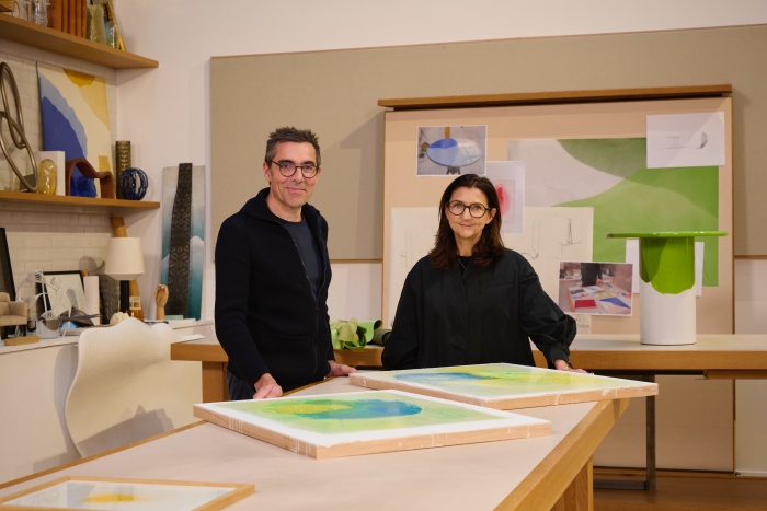 作为Patrick Jouin Édition系列的一部分,DROP边桌与咖啡桌采用旋压钢材结构,并结合手工浇铸珐琅工艺,桌面呈现如水彩晕染般的层次感,同时融入品牌标志性的亮绿色与深绿色。OLO扶手凳则以皮革包覆椅身,并于边缘点缀亮绿色细节,为作品增添鲜明识别度。整组家具系列展现出对工艺细节的高度讲究,在美学与实用机能之间取得平衡。简洁流畅的线条,结合钢材与皮革等真实材质,不仅突显精湛制作技术,也让每件作品拥有独特个性与收藏价值,据悉该作品随后亦将在指定Longchamp专门店陆续亮相。
