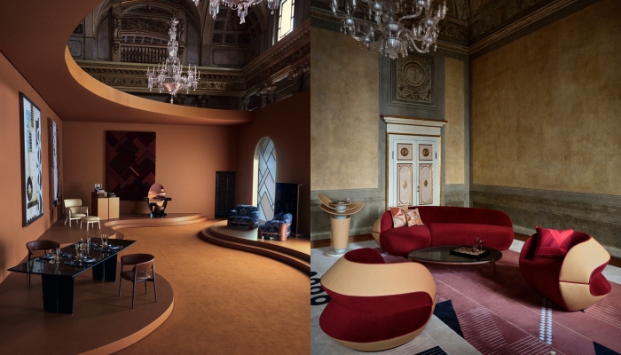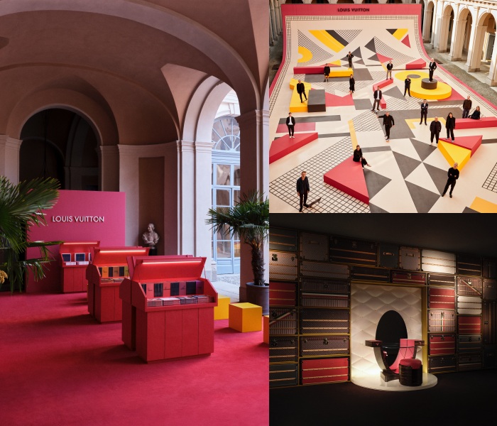 整个展览以房间式动线展开,每个空间皆拥有独立美学主题,从几何图腾、浓郁红调,到海洋绿意与宇宙灵感,通过家具、灯饰、地毯与装饰摆件,营造完整生活场景。经典作品如 Riviera Chilienne、Celeste梳妆台,也与Estudio Campana、Raw Edges 及Marc Newson等设计师的新作并置,展现工艺与创新之间的对话。现场亦同步展出多款标志性旅行硬箱,包括Malle Courrier Lozine Maison de Famille、Malle Paravent、Malle Lit与Malle Bibliothèque等珍贵作品,部分陈列于Louis Vuitton Montenapoleone Store。此外,品牌也将体验延伸至米兰街头,于 Via Montenapoleone设置快闪书店与特别硬箱装置,让设计周期间的Louis Vuitton世界更加完整。