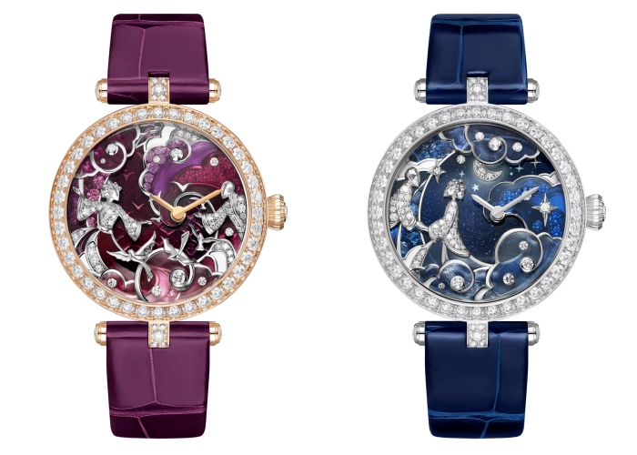 每一年都会期待Van Cleef & Arpels会谱写什么样的新浪漫故事。今年从两大主题中取得灵感,融汇爱情故事和诗意星空,带来Rencontre & Retrouvailles Célestes表款。作品描绘一段跨越时空的经典神话,将织女与牛郎星的爱情传说在表盘上娓娓道来。腕表描绘了这对爱侣翘首以盼的年度重逢画面,飞鸟振翅织就鹊桥,使他们得以再度相聚。表壳背面之上,织女星、牛郎星和天津四构成夏夜大三角星群,继续讲述着浪漫故事;